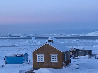 Birgitte had a great and interesting time as ARTIST IN RESIDENCE with Åsa Frankenberg in Oqaatsut, Greenland, Arctic Culture Lab. March 2022. Oqaatsut is a small settlement north of Ilulissat. Project to follow in summer of 2024. Sitespecific Soundpiece. We stayed in the blue house. Morning view from our window.